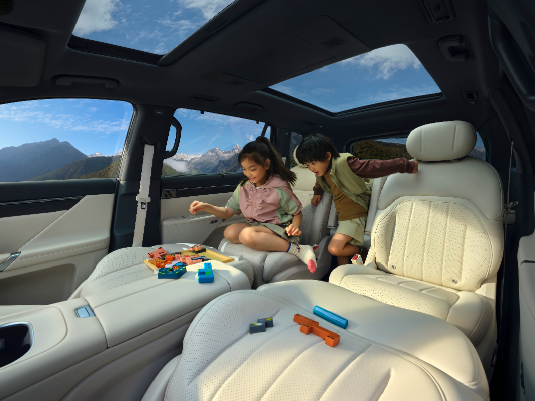 真正拉开两车体验差距的,是进入车内之后的感受。很多家庭买车,并不是为了参数表,而是为了“这台车好不好用”。eπ008在内饰和功能上的思路非常明确:围绕家庭生活去设计。