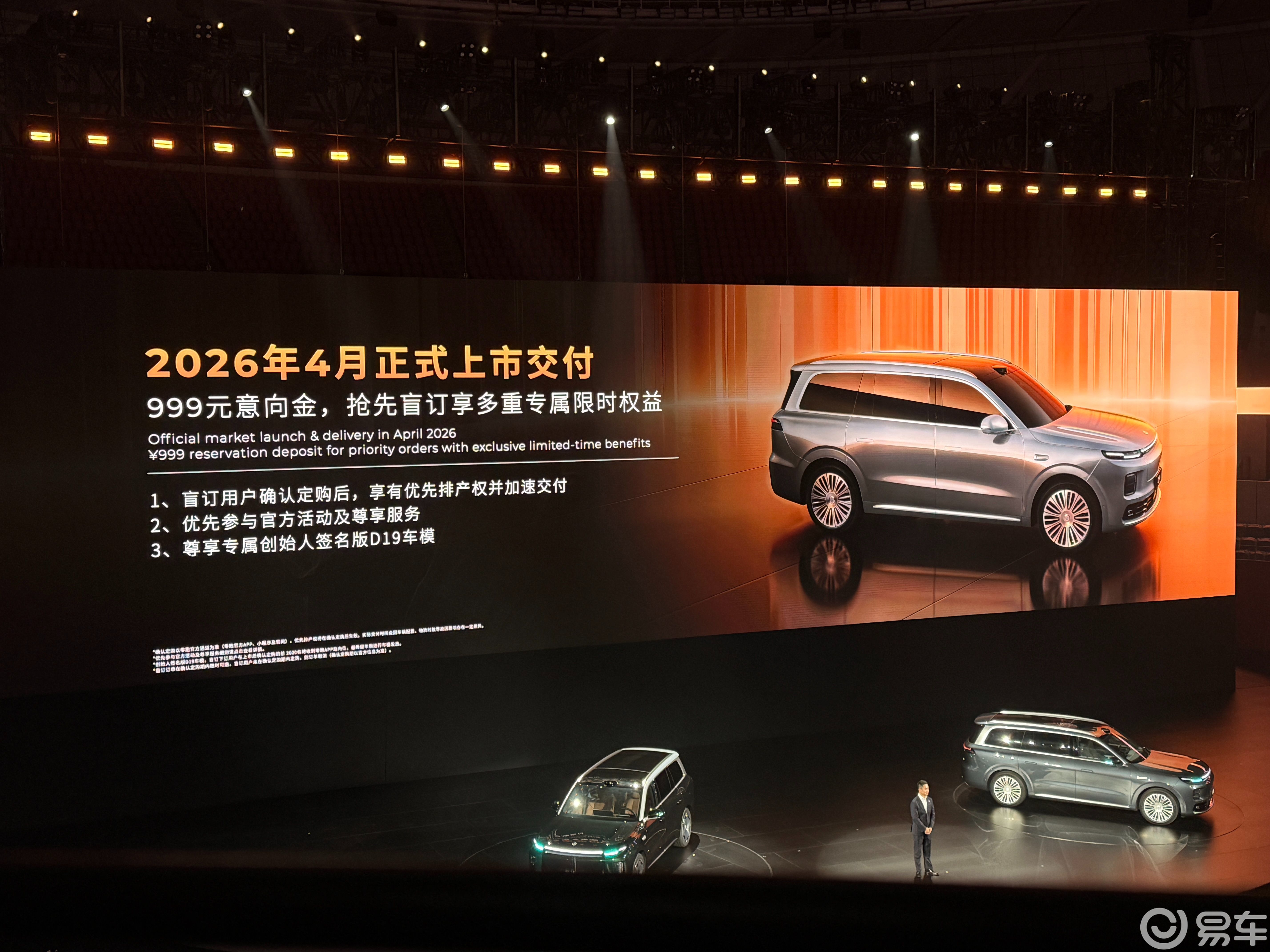 零跑的车型性价比表现一直都很突出,零跑D19作为旗舰车型,预计售价在25-30万这个区间,2026年4月将正式上市并交付,现在可以999元意向金盲订,盲订用户享有优先排产权。