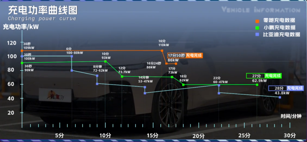 同样是11.98万,但是零跑B01的续航有着明显的优势,在电池组占据纯电动汽车成本40%的情况下,零跑B01无疑是更具品价比。而且,零跑B01的充电效率也是三款车中表现更出色的。而且还有媒体做了高温气候条件下的充电效率测试,测试的三款车型就是零跑B01、小鹏MONA M03、比亚迪秦L EV,在35度的气候条件下,三款车都进行了30%-80%的快充,都是采用同一充电站的250 kW直流快充桩。