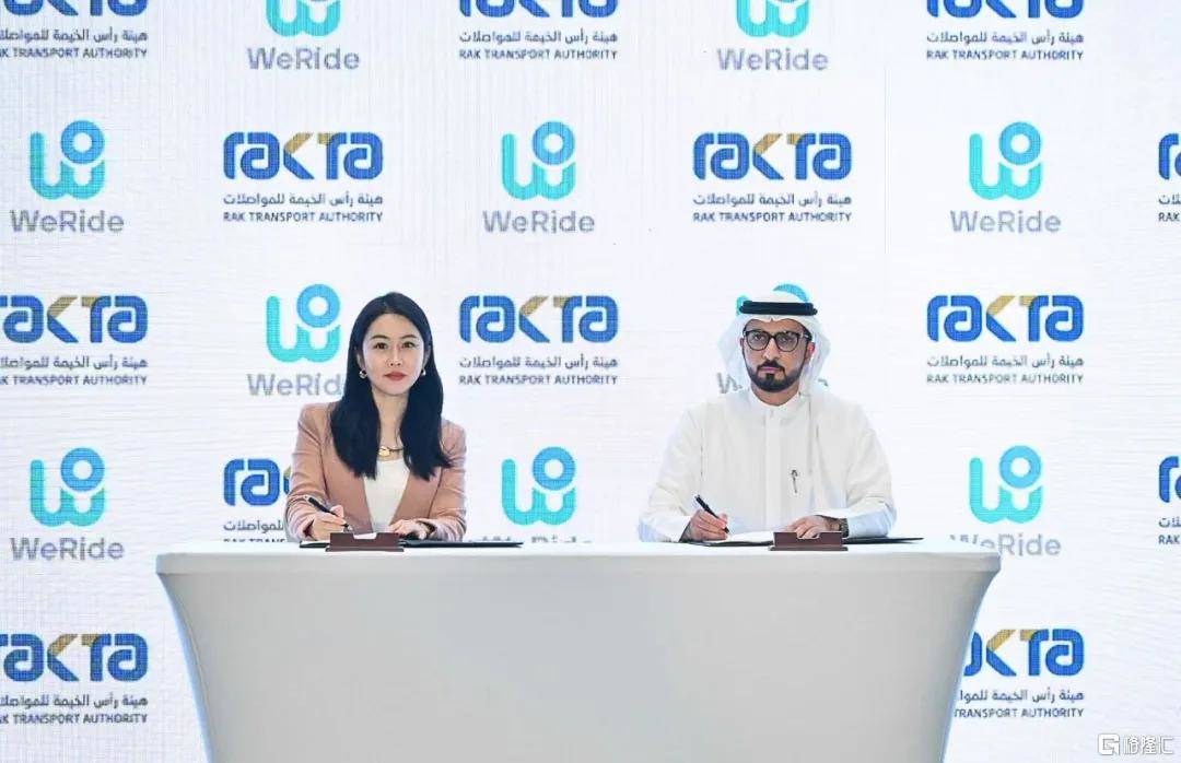 文远知行CFO兼国际负责人李璇与RAKTA局长埃斯梅尔・哈桑・阿尔布鲁希签署MOU