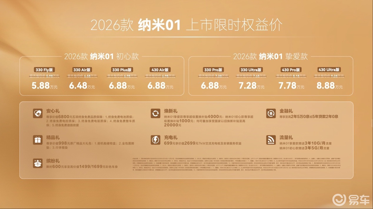 2026款纳米01被官方定义为“精致大宝贝”,主打女性用户和年轻群体。从参数看,280余项升级覆盖了设计、智能与安全,但最引人注目的仍是价格——限时5.88万起的定位,几乎击穿了同级别纯电小车的价格底线。作为媒体人,我认为这并非简单的“以价换量”,而是东风奕派对“国民车”概念的重新诠释。