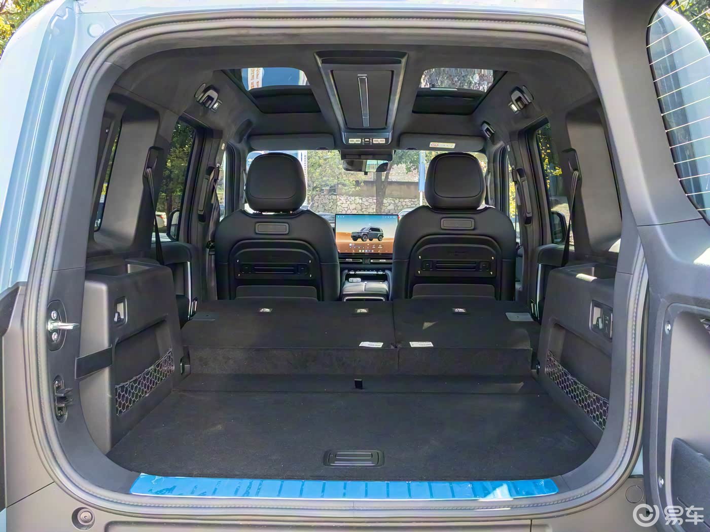 车身尺寸方面,iCAR V27的长宽高达到了5055*1976*1894mm,轴距为2910mm,定位于中大型SUV。由于iCAR V27的车身尺寸较大,且采用大五座的座椅布局,所以该车车内不论是乘坐空间还是后备厢的载物空间都是比较宽敞的。并且新车的后排座椅也支持按比例放倒,放倒座椅后装载一些大件物品也会更加便利。