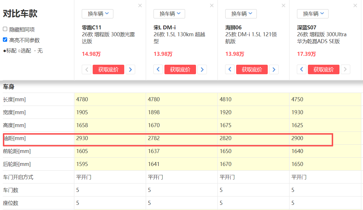 “迪家”的DM-i插混和长安旗下的深蓝超级增程都是目前业内认可度较高的新能源混动技术,其成熟度我想是没得说,但是它们好像都仗着综合续航够持久就忽视了纯电续航和快充性能,你看像宋L DM和海狮06DM入门款的纯电续航均仅为130km上下,并且售价都要卖到13.98万,而零跑C11增程版的纯电续航都做到了300km,虽然深蓝S07的增程式高配版纯电续航也有那么多,但这款惠后的价格都要16.39万,要比零跑C11 2026款 增程式 300激光雷达版贵2万左右。