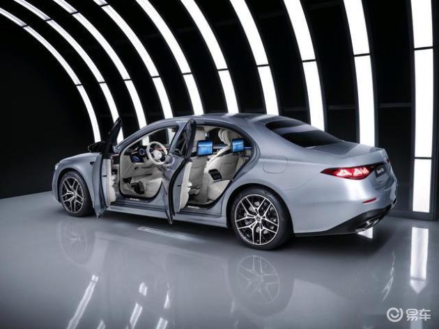 车身侧面延续经典轮廓,弹出式隐藏门把手、新造型外后视镜外壳与20英寸多辐轮辋相得益彰,前翼子板新增辅助驾驶传感器,侧裙饰板内置光感投影装置,开门即可投射“Mercedes-Benz”迎宾光毯。长轴距版车身加长14毫米,长宽高达到5304毫米,较国内在售长轴距版(5290毫米)进一步提升后排空间表现,轴距保持3216毫米不变。