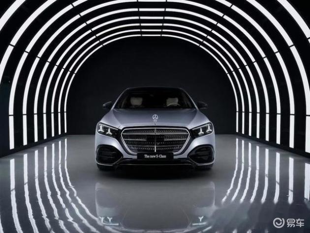 新一代奔驰S级的外观升级直击核心,前脸辨识度显著提升。发光格栅尺寸增加了20%,横向镀铬辐条由3条增至4条,搭配首次搭载的发光三叉星徽立标,夜间点亮后仪式感十足;前大灯采用专属“双星徽”造型,新一代智能数字大灯照明范围扩展40%,具备600米ULTRA RANGE超远距照明、弯道照明等功能,新增的低温预警投影功能可投射雪花标识,为出行增添安全保障,前包围造型亦同步优化,使车头更显沉稳大气。