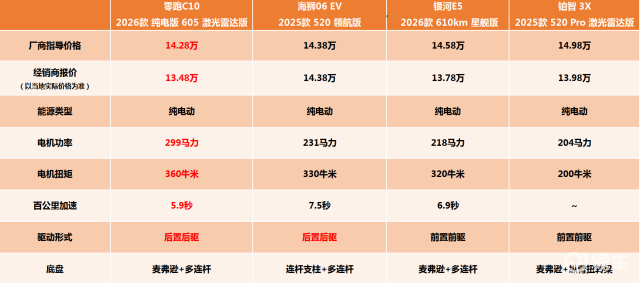 零跑C10 2026款 充电款 605 激光雷达版:13.48万