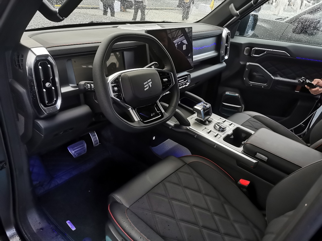 自由者骏马版长宽高分别为4706x1967x1845mm,轴距2810mm。前大灯为一体式方形设计,内部灯腔呈四叶草造型。车身最小离地间隙200mm,涉水深度达700mm;高强度钢材料占比80%,热成型钢占比55%,并配备一体式左右侧双门环,行李架静态承重可达300kg。该车的发动机最大功率135kW、峰值扭矩290N·m,传动系统匹配7速湿式双离合变速箱。底盘采用前麦弗逊式、后多连杆式独立悬架,搭配18英寸轮毂,支持智能蠕行模式。
