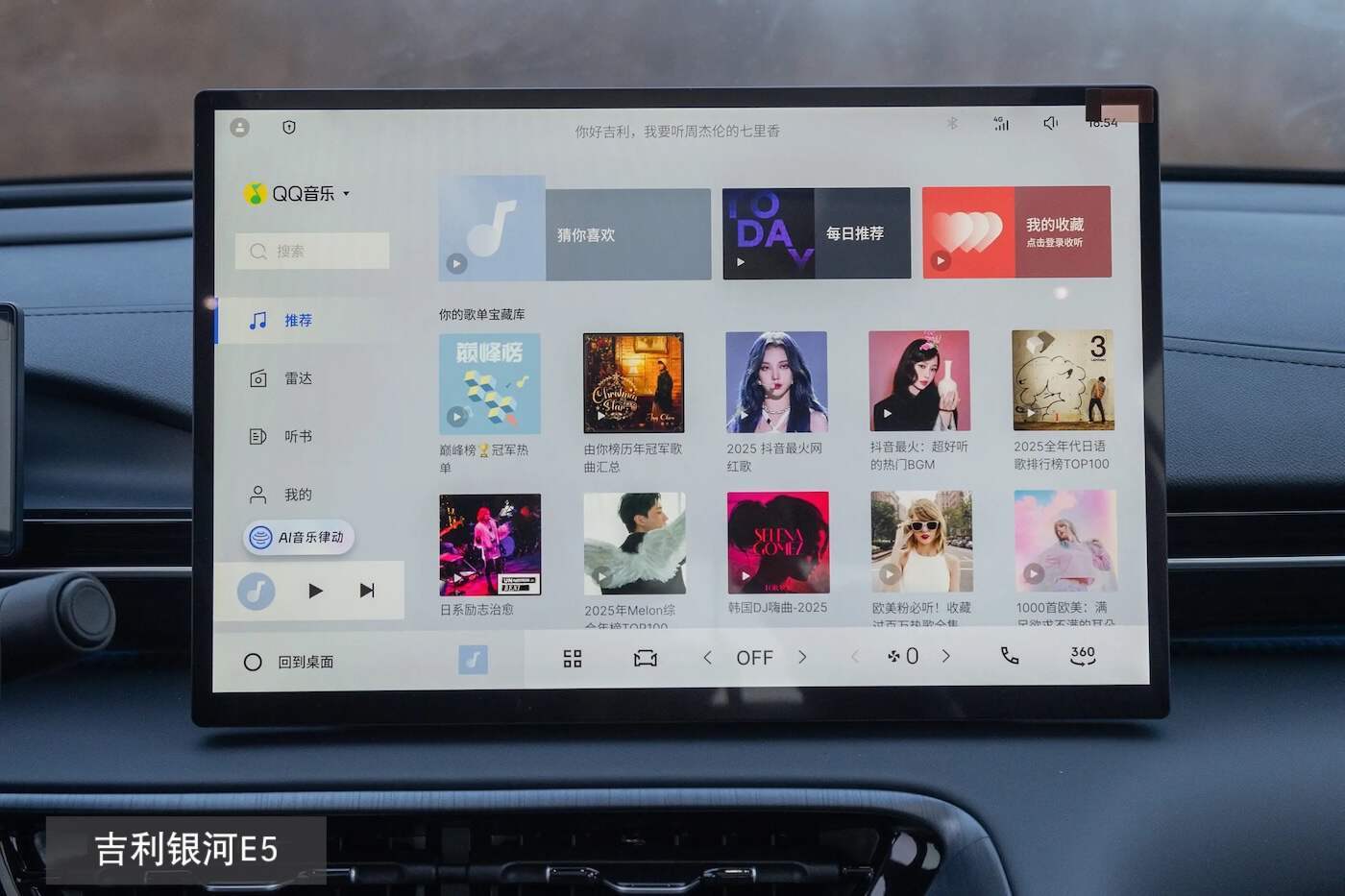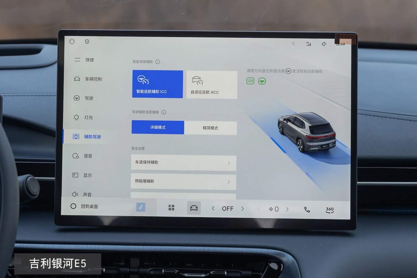 在驾驶辅助方面,银河E5目前还是以全速自适应巡航与常规车位泊车辅助为主,它在高阶功能方面比较有限,但在无标线场景下的前车跟随循迹、70km/h时速以上的自动纠偏辅助等,还是可以在一些特定场景下优化用车辅助体验。
