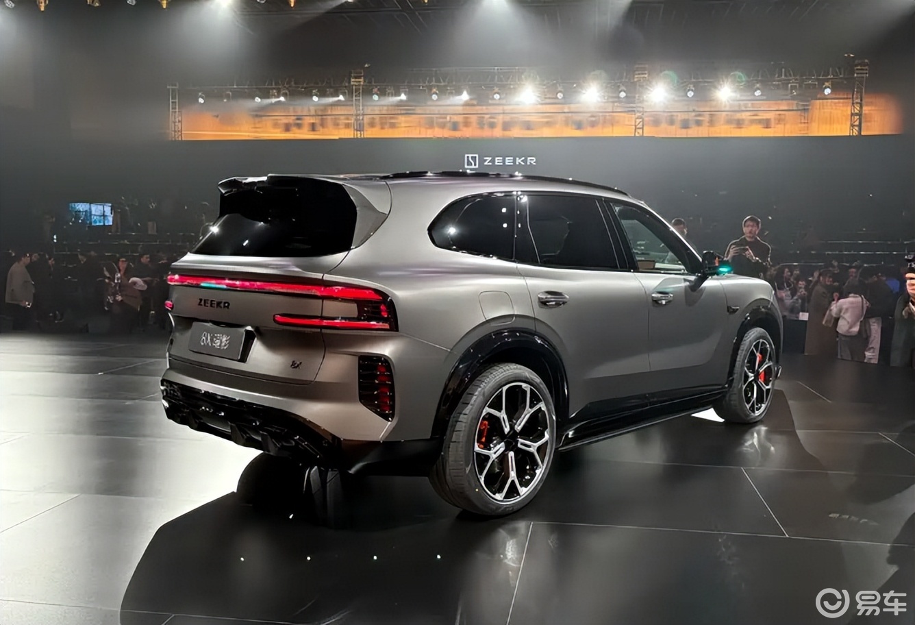 车尾是带有ZEEKR字样的贯穿式尾灯组,上面配了车顶扰流板,下面加了带镀铬元素的扩散器,视觉层次感直接拉满。