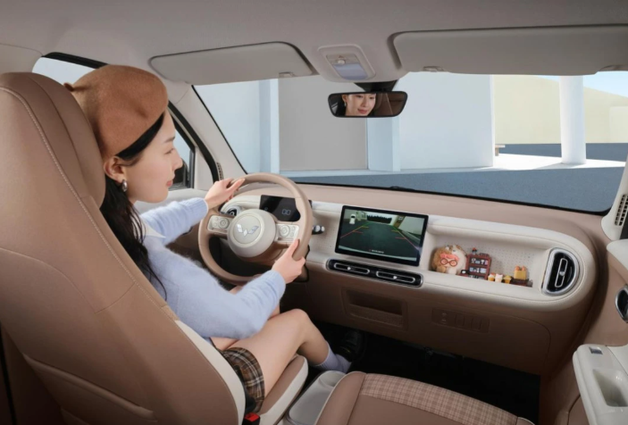 第五代宏光MINIEV拥有“玩趣美学、妙趣体验、安心守护”三大卖点,外观上,“甜趣方糖”设计语言让方廓圆润的线条兼具萌趣与亲和力,三款环彩珠光复古车色经过八层涂色工艺,保证了颜值出众的同时也兼顾了耐用性。内饰则采用“焦糖奶油”撞色设计,副驾前方还配有专属的“百变造景空间”,把车内的每一寸空间都变成了个性表达的画布。
