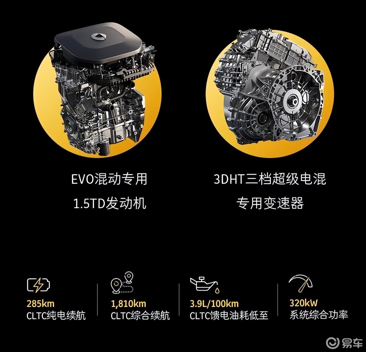 动力系统是精灵#6 EHD的核心亮点,搭载吉利雷神电混2.0技术赋能的1.5T插混系统,发动机最大功率120千瓦,系统综合功率达320千瓦(约435马力),匹配3挡DHT混动专用变速箱 。相比单/双挡混动系统,3挡DHT拥有更宽传动比范围,能让发动机和电机在更多工况下保持高效区间:城市低速优先电驱,中高速巡航发动机直驱降油耗,兼顾动力与经济性。电池提供20千瓦时和41.46千瓦时两种容量,对应CLTC纯电续航110公里和285公里,综合续航1810公里,馈电油耗3.9升/100公里,日常通勤可纯电出行,长途出行无需频繁补能 。