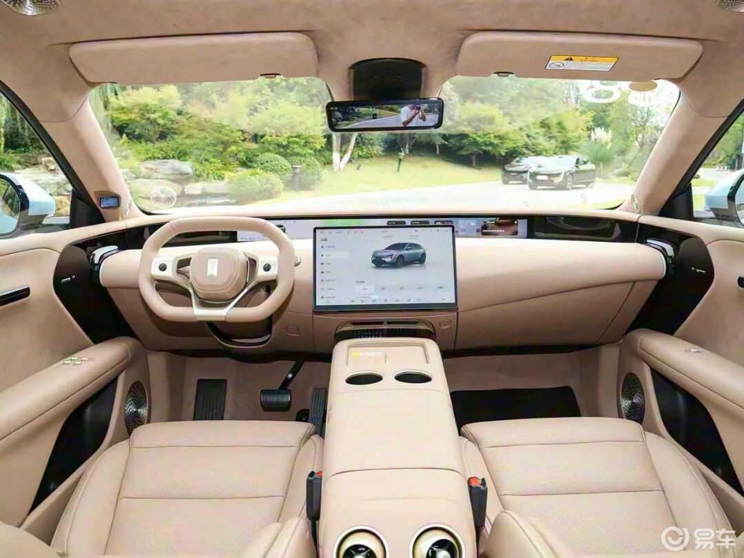 内饰方面,三幅式方向盘,新车新增了“岩棕”可选。配备远端35.4英寸狭长的4K屏+15.6英寸中控屏,流媒体内后视镜、双零重力按摩座椅、25个英国之宝扬声器音响系统等配置,座舱升级鸿蒙座舱5系统。