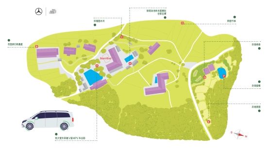次日,活动从网球场延伸至莫干山的自然怀抱中。细雨仍然下着,在越岭农场和仙人坑茶园开展的定向越野活动丝毫不受影响,但也考验每个家庭的团队协作能力。每个家庭手持精心设计的地图和奔驰V级MPV任务卡,需要共同寻找检查点、完成挑战任务。越野教练还在讲解着规则,每个人都已经跃跃欲试了。